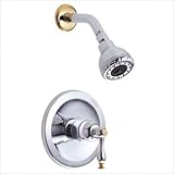 D510555CPBVTThe Sheridan collection shower trim kit is as durable as it is eye-catching. With a brilliant chrome finish with polished brass accent, you will want to welcome this trim kit into your home. Features : -Chrome finish with Polished Brass Accent -Single lever handle -Massage Shower Head -All brass shower arm -ADA compliant -Use with a single control pressure balance mixing valve with screwdriver stops or a single control pressure balance mixing valve less screwdriver stops (not included) -Danze products are covered by a manufacturer's limited "lifetime" warranty on finish, leaks and manufacturing defects -Also available in the following finishes: brushed nickel, chrome, oil rubbed bronze, satin nickel with brass accent, polished brass -Overall dimensions: 8.66" H x 7.09" W x 4.14" D